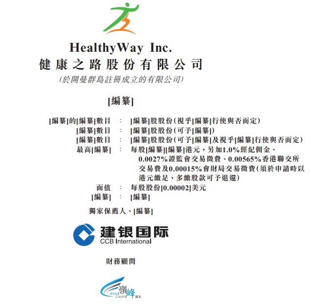 智通财经APP获悉,据港交所6月13日披露,健康之路股份有限公司递表港交所主板,建银国际为其独家保荐人。