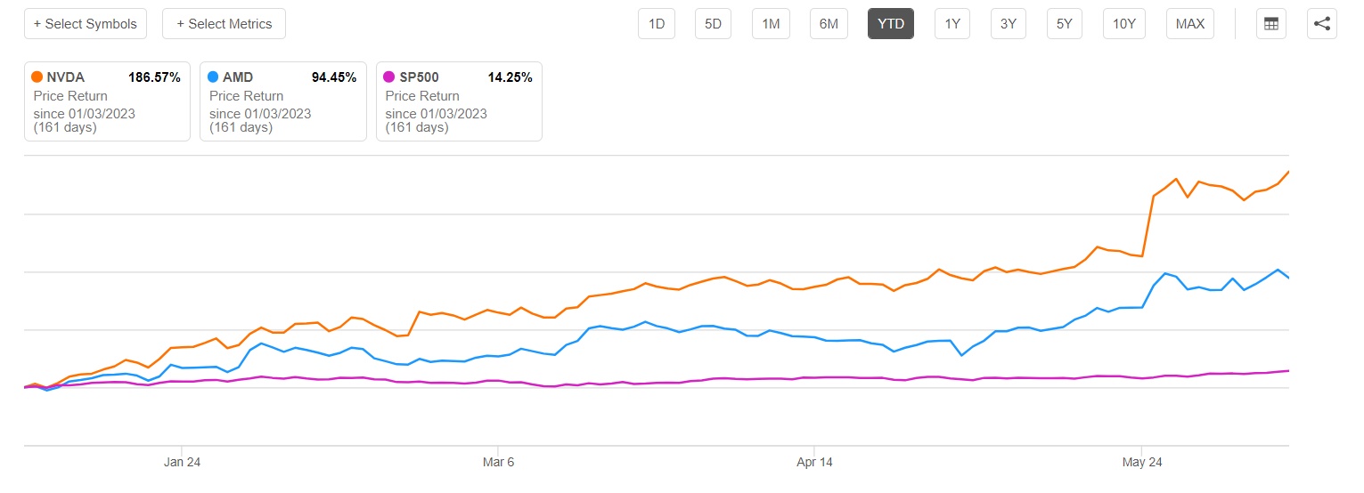 尽管如此,这场关于AI芯片的演讲并没有让投资者眼花缭乱,他们此前已经对人工智能市场规模的扩张速度抱有极高的期望。截至周一收盘,AMD股价今年累计上涨接近95%,但在周二的发布会结束后,截至周二美股收盘,AMD股价跌幅超过3%,其竞争对手英伟达股价反而涨近4%。今年迄今为止,AMD竞争对手英伟达的涨幅则高达惊人的186%。