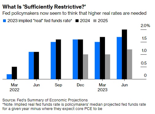 但无论如何,目前美联储政策制定者都在暗示,他们认为“足够限制性”的政策利率水平(实际利率)将比此前认为的要高。