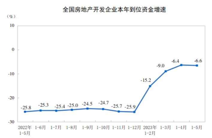 5月末,商品房待售面积64120万平方米,同比增长15.7%。其中,住宅待售面积增长15.9%。