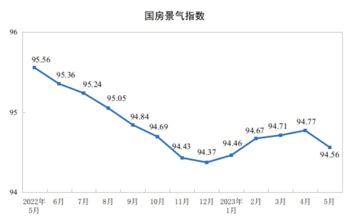 5月份,房地产开发景气指数(简称“国房景气指数”)为94.56。