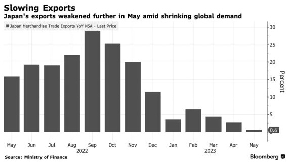 智通财经APP获悉,日本财政部周四公布的数据显示,该国5月份出口额同比增长0.6%,为2021年2月以来的最低增速。相比之下,分析师的预期为下降1.2%,尽管好于预期,但仍反映出全球贸易走弱的趋势。矿物燃料、芯片制造机械和半导体零部件的出口下降拖累了日本的海外出口。