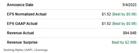 虽然苹果在2023财年第二季度的每股收益为1.52美元,比预期高出0.09美元,营收意外高出20亿美元,但2023财年第二季度的整体基调逊于预期。