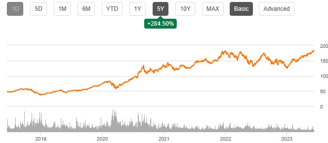 从绝对角度来看,自2023年1月以来,苹果公司的股价已上涨47%。这是由于苹果公司自2020年以来最糟糕的Q1季度财报以及相对较弱的Q2财报。