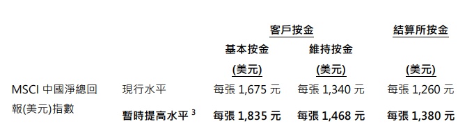 MSCI中国净总回报(美元)指数期货合约的按金水平将于2023年6月22日营业时间结束后恢复至正常水平。