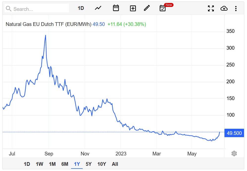 智通财经APP获悉,荷兰政府将于10月永久关闭格罗宁根气田,此举可能会在欧洲进入下一个冬季之际限制欧洲的天然气供应缓冲。受此消息影响,截至发稿,欧洲基准荷兰TTF天然气期货价格大涨超30%,报49.50欧元/兆瓦时。