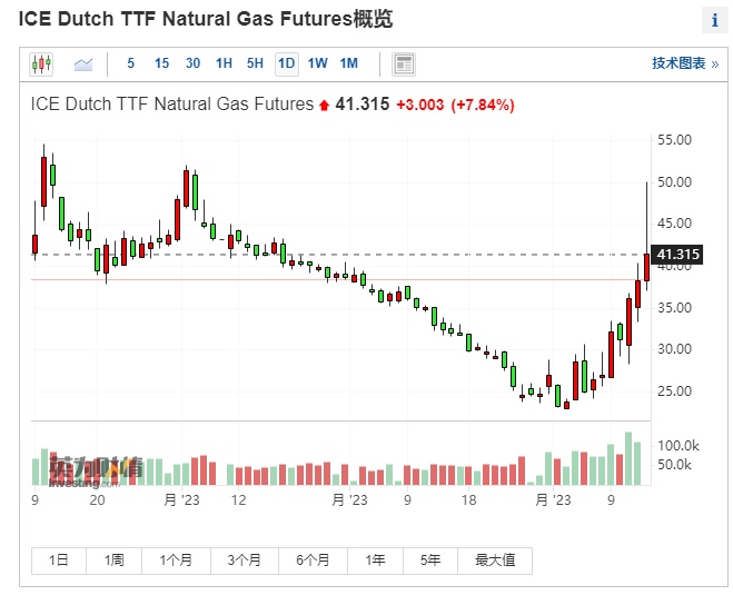 智通财经APP获悉,6月15日盘后,荷兰TTF天然气期货7月合约一度上涨30%,突破50欧元/兆瓦时,创4月以来新高。消息面上,有媒体报道称,荷兰计划在今年关闭欧洲最大的天然气田。知情人士称,荷兰政府将于10月永久关闭格罗宁根气田。
