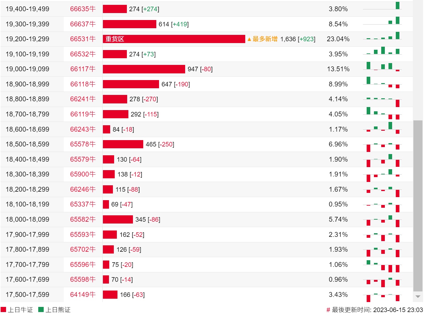 牛证街货重货区和最多新增都在19200-19299区间,该区间最新牛证数量为1636张,较上一交易日增加923张。