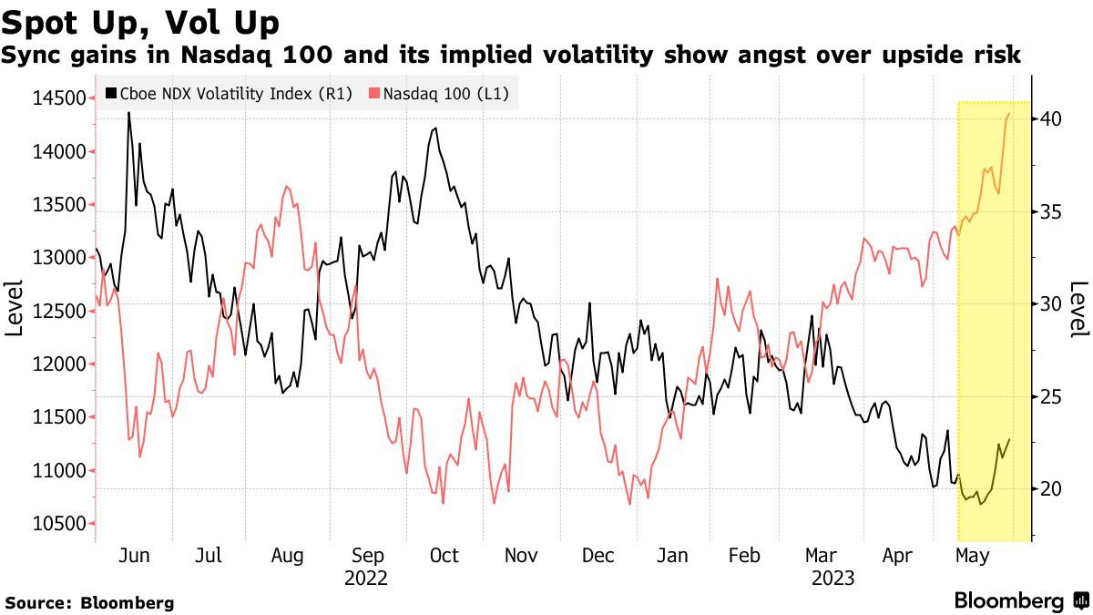 “就在几个月前,我还记得投资者普遍持悲观的看法。但是现在,看空者正在自我反省,”加拿大皇家银行资本市场的衍生品策略主管Amy Wu Silverman表示。“这种变化是什么时候开始的? 我想是更好的经济数据,英伟达的井喷式业绩预期,或者可能只是那些投资仓位不足的人找到了熟悉的感觉,即火车即将离开车站。”