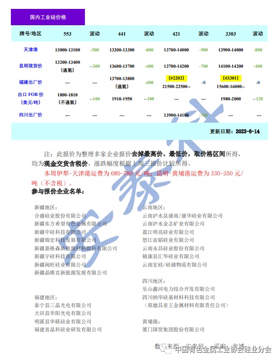 同时,业内部分机构认为:随着丰水期到来以及部分新增产能释放,下半年国内工业硅市场供应量仍有较大增加,而短期内需求无法实现明显增加,直接导致期货盘面价格在5月份之后快速下滑20%以上。