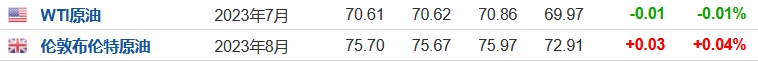 3.截至发稿,WTI原油跌0.01%,报70.61美元/桶。布伦特原油涨0.04%,报75.70美元/桶。