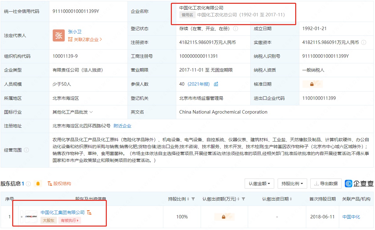 股权结构方面,农化公司直接持有先正达99.1%股份,为控股股东;同时农化公司的全资子公司麦道农化持有先正达0.9%股份。农化公司由国务院国资委履行出资人职责企业中国中化通过其全资子公司中国化工集团间接全资持有,先正达的实际控制人系国务院国资委。