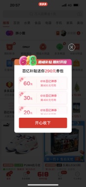 活动期间,为了进一步提升消费者的购物热情,拼多多百亿补贴618活动将陆续发放100亿优惠券,每人最高可领取290元,为最广大用户带来更多的消费普惠。消费者打开拼多多APP,进入百亿补贴频道,就可以看到百亿补贴狂欢券包领取入口,点击“开心收下”即可领券,优惠券均可在百亿补贴的基础上叠加使用。