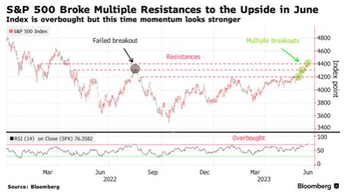 对于华尔街的策略师们来说,现在是一个关键时刻,因为就目前而言,市场对2023年的普遍看跌前景仍未能实现,他们需要预测股市接下来将走向何方。此前普遍的观点是,股市将在上半年下跌,并在年底回升,最终与2022年底的水平相比变化不大。但现在情况却恰恰相反,标普500指数今年迄今已累计上涨约15%,纳斯达克100指数上涨了近40%。