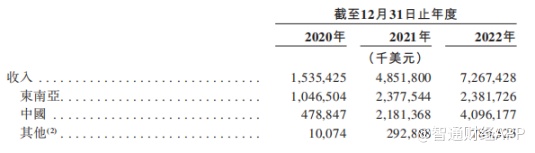 分地区来看,不仅公司在东南亚的营收2年时间内翻倍,中国区域的营收更是从4.79亿美元增长至40.96亿美元,一举超过东南亚地区营收,实现惊人增速。