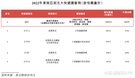 根据弗若斯特沙利文的资料,J&T四段码系统是中国为数不多的集成并整合主流地址数字化算法主要功能的先进系统之一。截至2022年12月31日,公司是东南亚唯一一家大规模应用九字码技术及专有地址数据库的大型快递服务提供商。