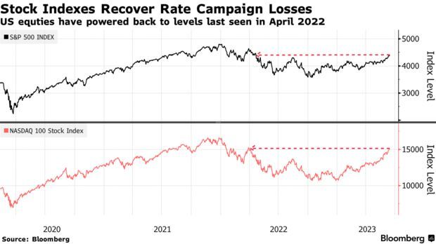 智通财经APP获悉,标普500指数上周收涨2.58%,为连续第五周上涨,报4409.59点。这一水平高于2022年3月16日美联储开启40年来最激进的加息周期之时的水平,彼时的标普500指数收于4358点。除了美股之外,美元、债券波动性以及股票仓位等关键指标都回到了美联储加息之前的水平附近。