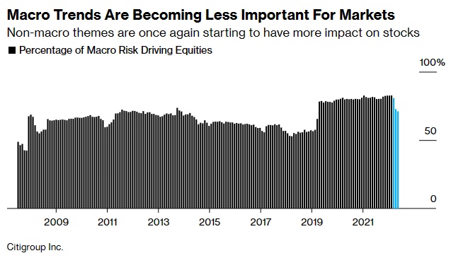 花旗集团的一个模型显示,自今年3月初以来,宏观因素对股市的影响已从83%降至71%,这是2009年以来最大的三个月降幅。资管巨头施罗德的投资策略师Jonathan Mackay表示:“在未来6至12个月,美联储的重要性可能会有所下降。随着美联储可能启动暂停期,其他全球驱动因素和基本面驱动因素将发挥更大作用。”