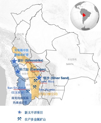 新太平洋金属公司(NEWP.US)于2017年成功收购银沙(Silver Sand)项目,获得了其5.42平方公里的勘探权和采矿权,并与玻利维亚国家矿业公司(COMIBOL)签署了采矿生产合同(MPC),拥有了该项目周边56平方公里的矿权。之后的5年里,新太平洋陆续收购了玻利维亚科兰加(Carangas)银金矿、银针(Silverstrike)银矿等优质潜力项目,在玻利维亚整体布局已初步形成。