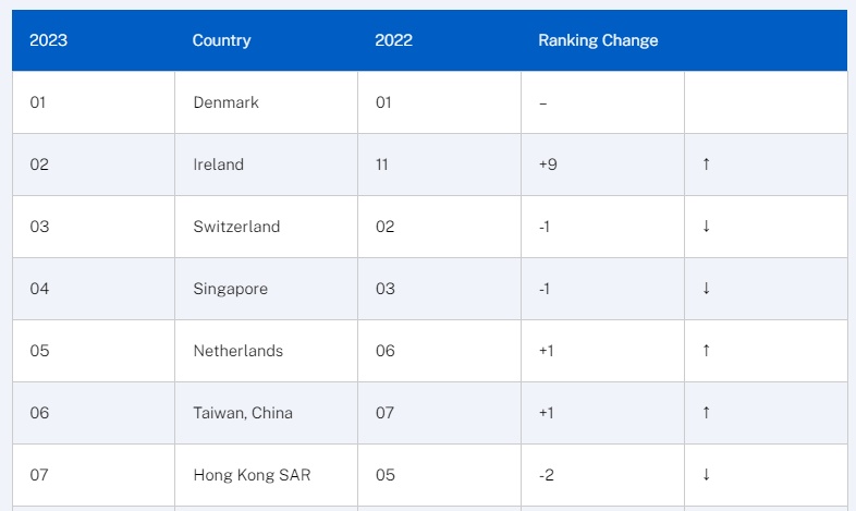 智通财经APP获悉,6月20日,国际管理发展学院(IMD)发布《2023年世界竞争力年报》,丹麦、爱尔兰和瑞士位居前三,中国香港排名全球第7位,较去年下跌两位。