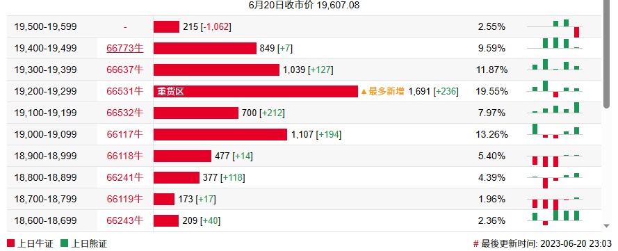 牛证街货重货区和最多新增都在19200-19299区间,该区间最新牛证数量为1691张,较上一交易日增加236张。