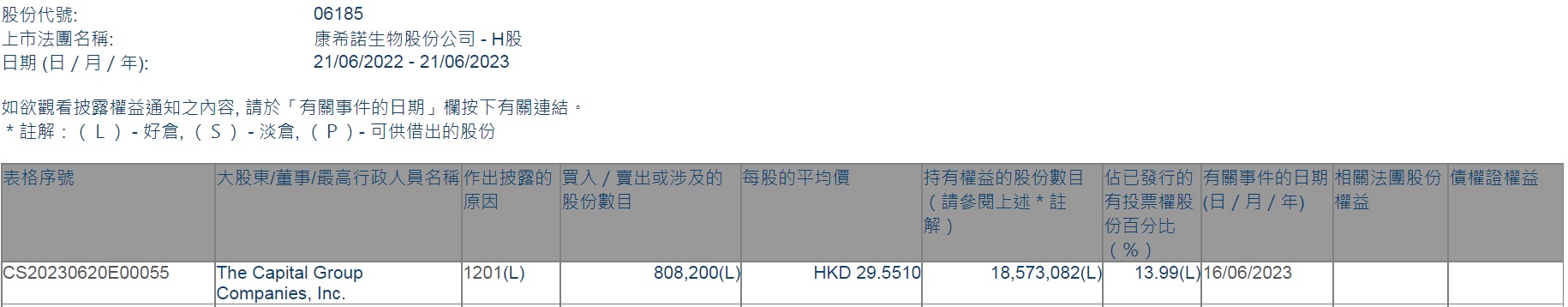 智通财经APP获悉,香港联交所最新资料显示,6月16日,美国资本集团减持康希诺生物(06185)80.82万股,每股作价29.551港元,总金额约为2388.31万港元。减持后最新持股数目约为1857.31万股,最新持股比例为13.99%。