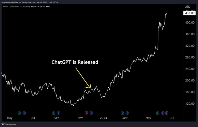 ChatGPT发布后,英伟达的估值倍数呈抛物线式增长: