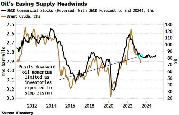 但较长期的前景可能会被更好的中期供应状况所掩盖。尽管EIA最近对美国原油库存的估测有所上升,但经合组织的商业库存似乎已经见顶,缓解了刺激原油价格的重要逆风因素。