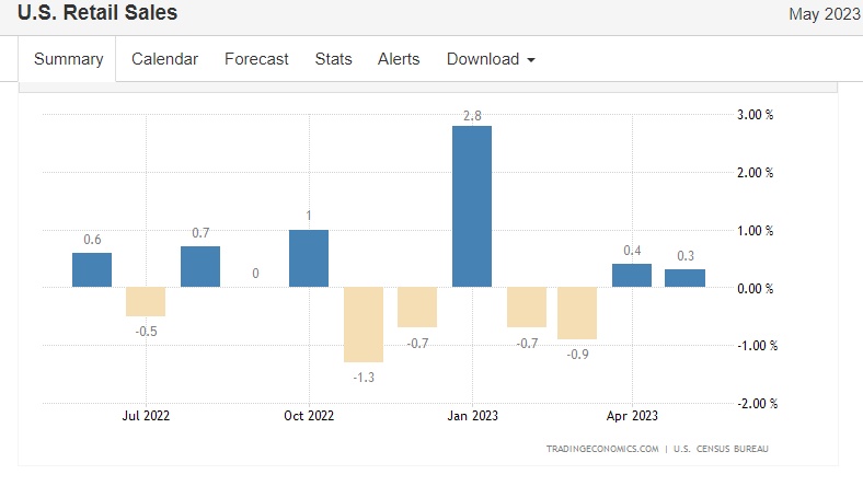 据统计,消费类支出占到美国GDP总额超过八成,因此消费无疑是美国经济的“命脉”。此前有数据显示,美国经济的支柱——消费支出仍然坚挺,素有“恐怖数据”之称的“美国零售销售额”数据显示,5月零售销售额环比上升0.3%,预期为下降0.1%,前值为上升0.4%;美国5月核心零售销售(除汽车)环比上升0.1%,与预期一致。