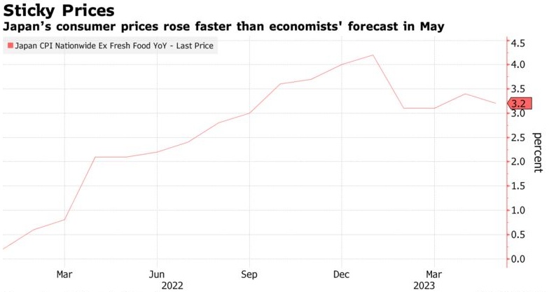 智通财经APP获悉,日本5月份消费者价格指数(CPI)涨幅快于预期,而更深层次的通胀趋势继续加强,这些结果可能会引发市场猜测,即日本央行将在7月份上调通胀预测,甚至调整刺激计划。周五公布的数据显示,日本5月CPI(除生鲜食品)同比上涨3.2%,较4月份3.4%的涨幅有所放缓。一项不包括能源价格的通胀指标继续走强,日本5月CPI(除生鲜食品及能源)同比增幅达到自1981年以来的最高水平,升至4.3%,高于4月份的4.1%和预期的4.2%,表明潜在价格趋势继续上升。