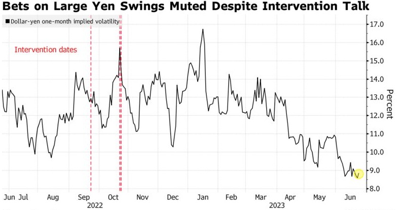 不过,到目前为止,市场对任何口头干预都会引发日元大幅波动的预期似乎并不强烈。日元的一个月隐含波动率低于去年实际干预前的水平。