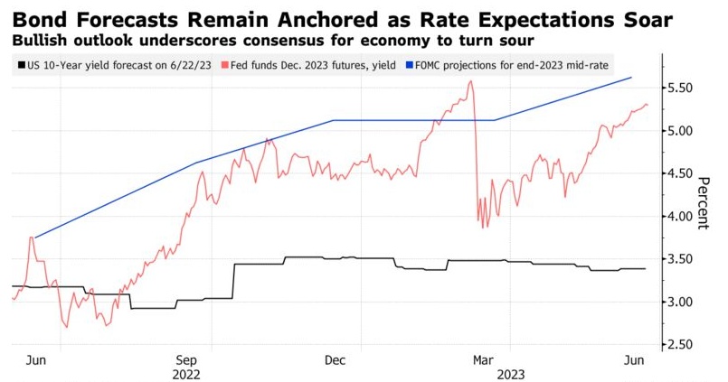 远期市场的交易员也在重新调整押注,以反映市场对央行的信心。他们预计,未来一年10年期美国国债收益率将上升约60个基点,接近三个月来的底部。而2023年初的预测是上升逾100个基点。