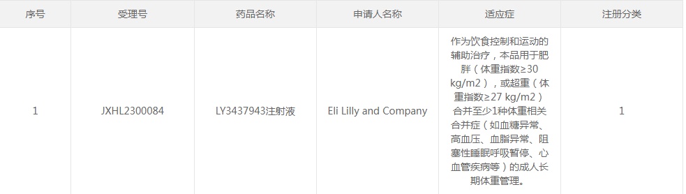 智通财经APP获悉,中国国家药监局药品审评中心(CDE)官网显示,礼来公司(LLY.US)递交的1类新药LY3437943注射液在中国获得多项临床试验默示许可,拟开发适应症为:作为饮食控制和运动的辅助治疗,用于肥胖或超重合并至少1种体重相关合并症的成人长期体重管理。
