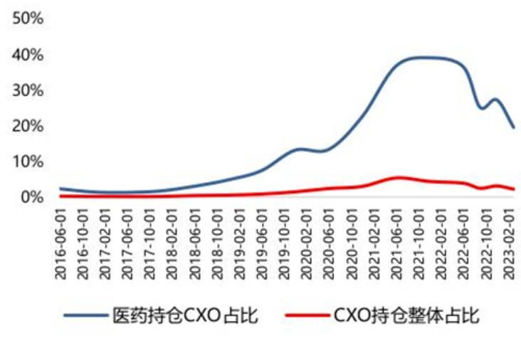 二级市场方面,在今年一季度CXO板块相继披露2022年年报和2023年一季报后,市场对比发现剔除新冠大订单的影响开始逐渐显现。而从公募持仓的情况来看,其持仓趋势的变化更多由板块估值变化主导。