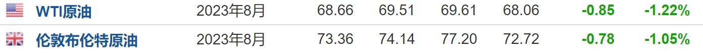 3.截至发稿,WTI原油跌1.22%,报68.66美元/桶。布伦特原油跌1.05%,报73.36美元/桶。