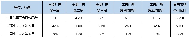 6月初市场需求略有回落,中旬随着“618”促销活动的开启、地方补贴的发布以及端午节到来的影响,车市热度有所回温。各厂商和经销商为冲击半年目标,积极开展各种促销营销活动,地方性补贴叠加企业半年度冲量双重优惠,支撑终端零售环比持续升温。