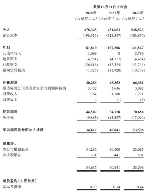 财务方面,于2020年、2021年及2022年,泓盈服务的收入分别约为人民币2.78亿元、4.32亿元及5.29亿元;同期利润分别约为人民币3461.7万元、4084.1万元及5359.6万元。