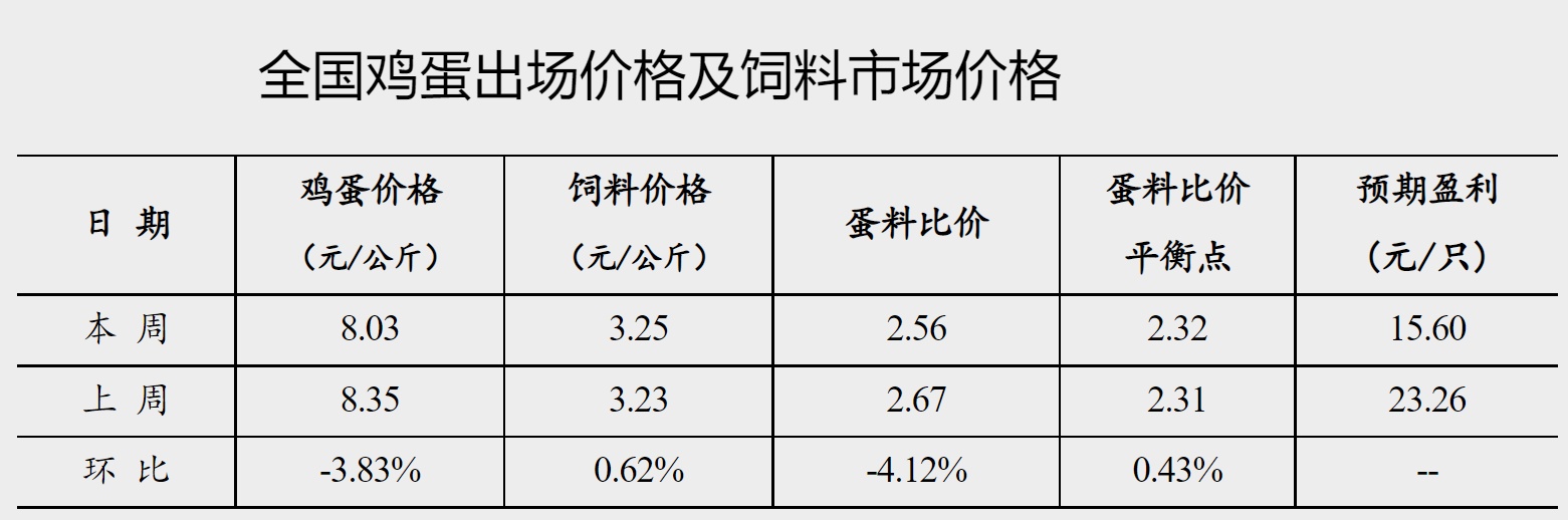 6月21日当周全国蛋料比价为2.56,环比下降4.12%。按目前价格及成本推算,未来蛋鸡养殖盈利为每只15.60元。随着端午节前备货结束,鸡蛋市场走货放缓,另外受湿热天气影响,鸡蛋储存难度增大,下游为确保鸡蛋品质,入市采购量降低,本周蛋价弱势下滑。节后下游有逢低补货计划,预计下周蛋价或趋稳后小涨,但整体涨势不强,蛋鸡养殖盈利或继续收窄。