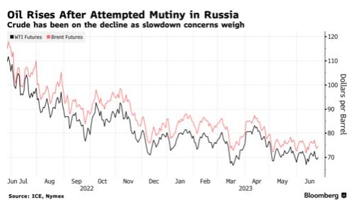 此前,由创始人叶夫根尼·普里戈任领导的俄罗斯私人雇佣军集团瓦格纳突然发动叛乱,但随后又戏剧性地结束,这让俄罗斯陷入了一种诡异的平静,然而,这种不稳定可能将对原油市场进一步产生影响。