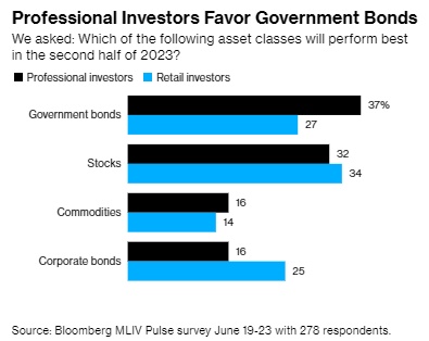 另外,虽然预计下半年可能会出现波动,但投资者认为股票和债券仍将保持近几个月的负相关关系,去年年底的一项调查中有超过60%的人预测会出现这种情况,这种观点支持了曾在2022年失效的60/40投资组合多样化策略。