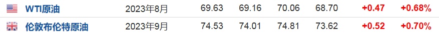 3.截至发稿,WTI原油涨0.68%,报69.63美元/桶。布伦特原油涨0.70%,报74.53美元/桶。