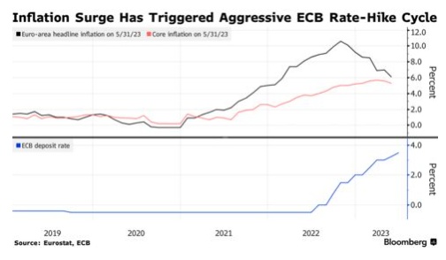 目前,欧洲央行官员正在开会,以评估历史性的货币紧缩周期还需持续多久,才能使通胀率恢复到2%的目标。尽管在能源成本暴跌后,总体通胀率有所下降,但事实证明,潜在的通胀压力要持久得多,并有可能在6月份有所加剧。