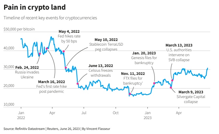 在2022年主要加密货币公司的一系列倒闭让投资者蒙受损失后,该行业今年受到了投资者信心丧失和监管审查加强的打击。