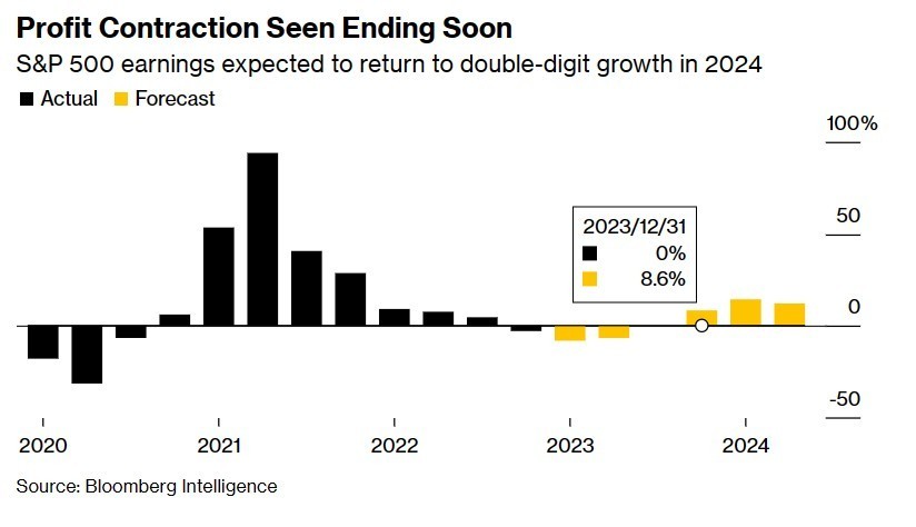 根据分析师的普遍预测水平,第一季度可能标志着企业盈利水平的阶段性低谷。分析师们普遍预计,从2022年底开始的利润收缩趋势预计将在今年第三季度左右结束,并预期在2024年恢复两位数级别的利润大幅增长趋势。市场往往提前半年左右的时间定价趋势线,但是,一些美股市场的"看涨信仰者们”可能已开始为极度乐观的利润趋势做准备工作。