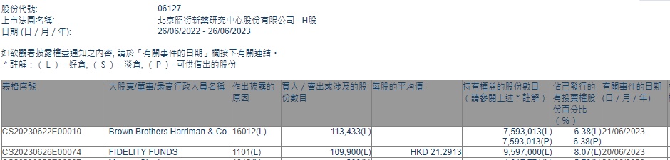智通财经APP获悉,联交所最新资料显示,6月20日,富达基金增持昭衍新药(06127)10.99万股,每股作价21.2913港元,总金额约为233.99万港元。增持后最新持股数目为959.7万股,最新持股比例为8.07%。
