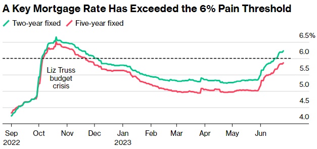 英国2年期住房贷款平均利率目前约为6.25%,接近去年秋天导致前英国首相特拉斯下台的市场动荡时期的水平。英国政府面临越来越大的压力,党派和智库要求政府采取更多措施帮助陷入困境的家庭,英国影子财政大臣警告称,随着数百万人被推到破产的边缘,英国有可能将出现“抵押贷款灾难”。