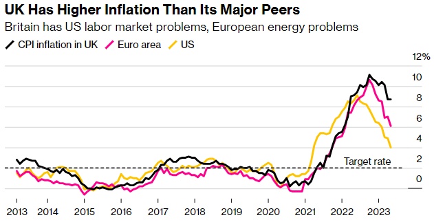 智通财经APP获悉,英国央行为了遏制严重的通胀将在今年年底前把英国推入衰退。彭博经济学家表示,尽管自2021年底以来连续13次加息,但通胀仍处于接近两位数的水平,因此,英国央行抑制顽固的通胀可能需要以轻微但持久的经济衰退为代价。然而,根据市场的加息预期,尾部风险很大,英国经济可能陷入严重的衰退之中。