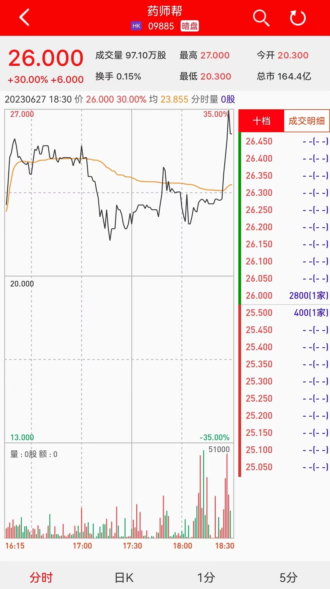 智通财经APP获悉,药师帮(09885)将于6月28日(周三)在香港挂牌。截至收盘,利弗莫尔证券暗盘交易显示报价26.00港元,较招股价20.00港元涨30%。每手200股,不计手续费,每手赚1200港元。