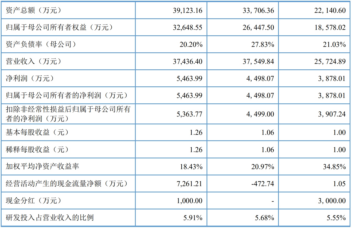 财务方面,于2020年度、2021年度及2022年度,天承科技实现营业收入分别约为2.57亿、3.75亿元、3.74亿元;同期,公司实现净利润分别为3878.01万元、4498.07万元、5463.99万元。