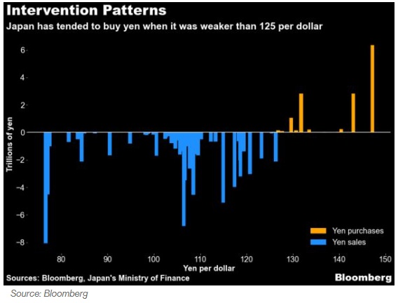 不过,尽管目前日元兑美元汇率降至1美元兑144日元的水平似乎没有一年前那么可怕,但若进一步跌至150日元,日本仍有可能走出新的舒适区,走上新的行动之路。